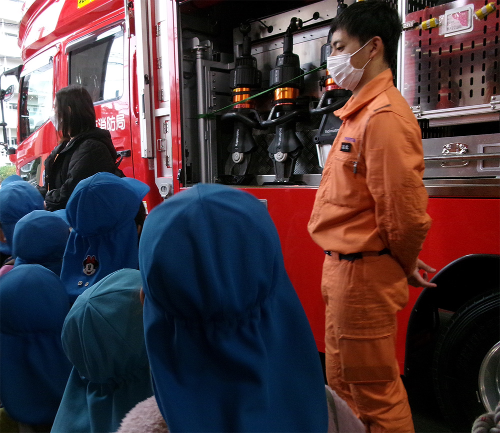 先日、年長児が消防署(高見分署)へ見学に行きました。